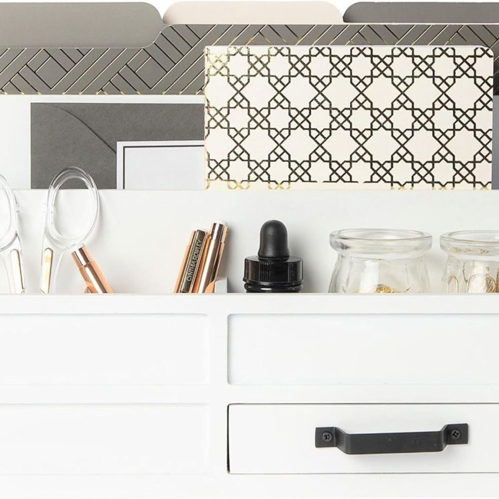 Introducing the BLU MONACO White Desktop Organizer with Drawer, the perfect solution for keeping your home or office space clutter-free and organized. This stylish and functional desktop organizer is designed to streamline your workspace and enhance productivity. Crafted from high-quality paper wood, this desktop organizer features a sleek white finish that complements any decor style….